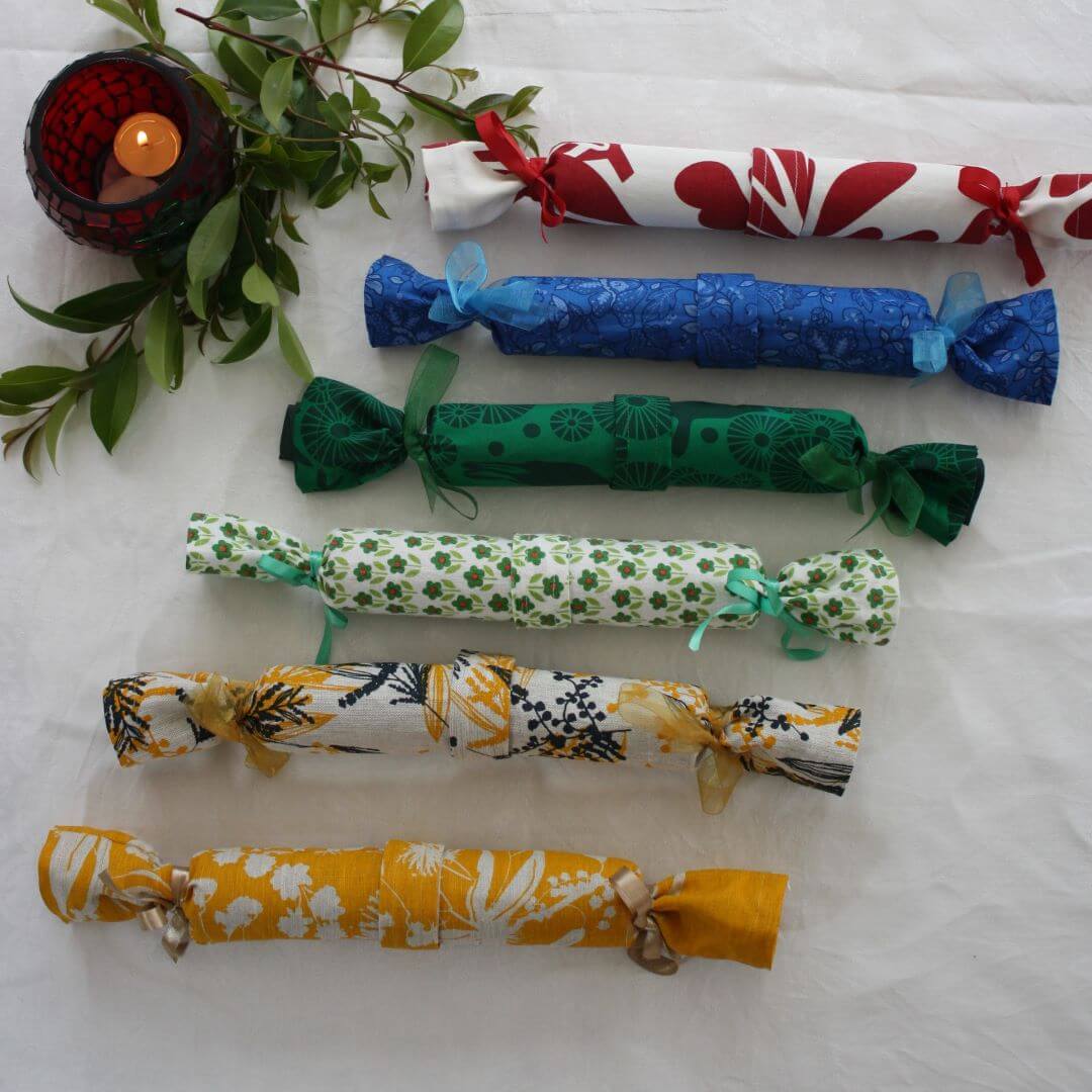 These beautiful Christmas Crackers pull apart just like an ordinary cracker but can be used year after year. Fill them with you own gifts / chocolates / jokes for a more personalised Christmas celebration. The velcro connecter gives them a nice pop and snap feel but 'cracker snaps' can be added if you like an extra 'pop'!